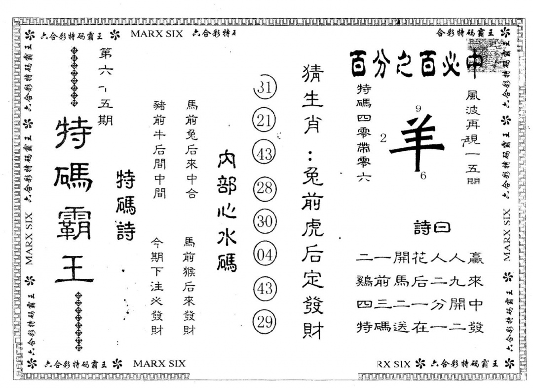 另版曾道人特码诗